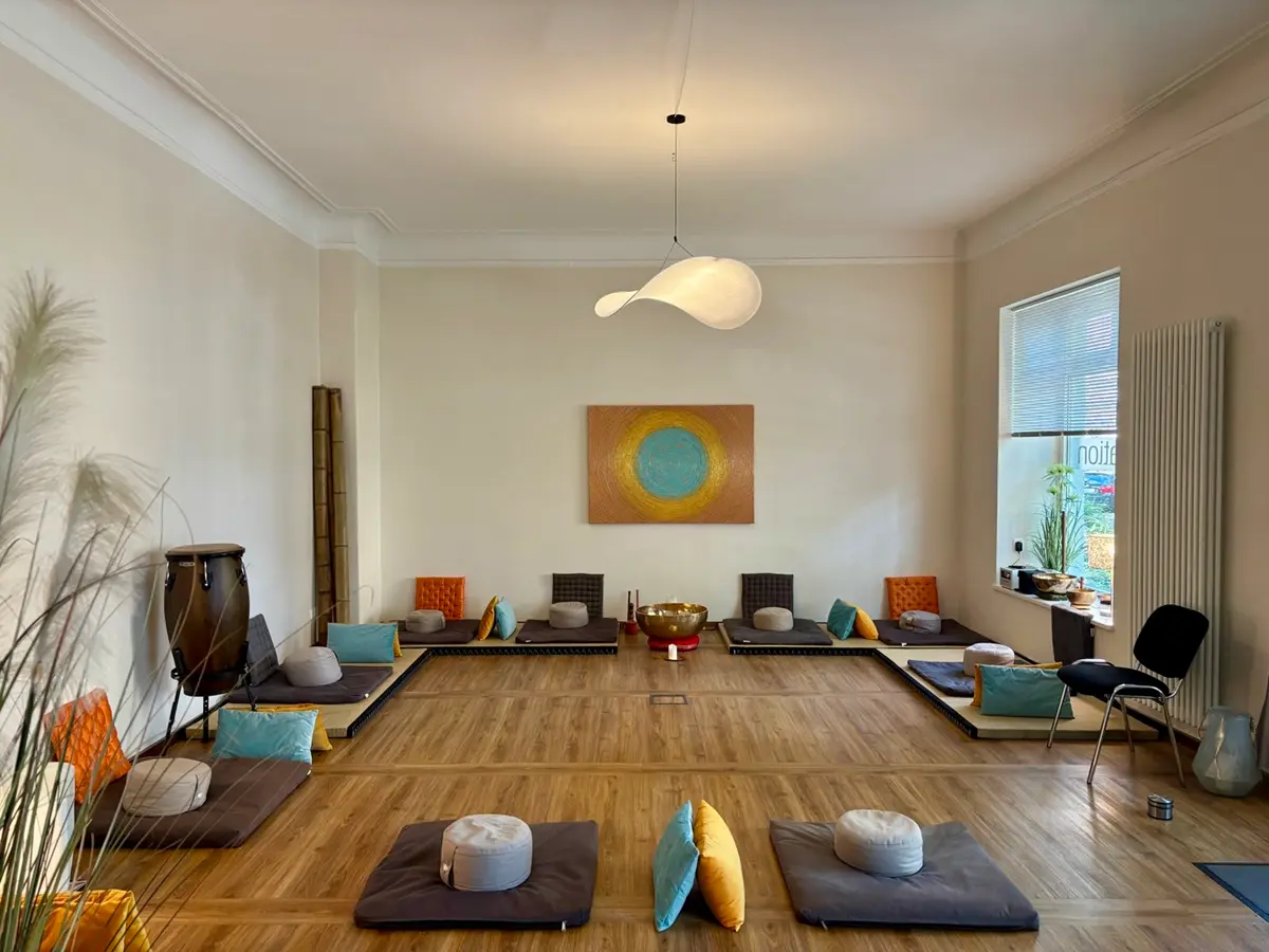 Meditiere in entspannter, ungezwungener Atmosphäre und in kleinen Gruppen von maximal 14 Teilnehmern. Zur Meditation stehen weiche Unterlagen mit Sitzkissen, Meditationsbänkchen oder bequeme Stühle und Matten zur Verfügung.